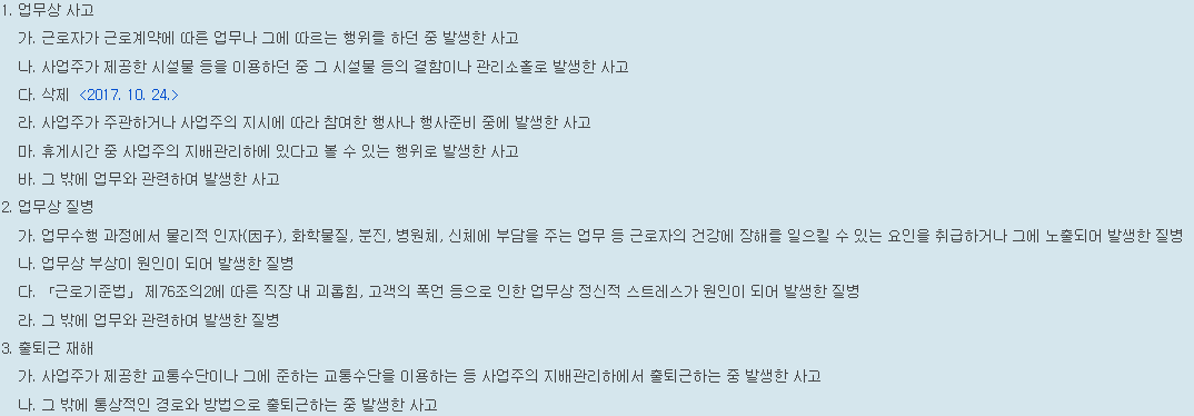 업무상재해의 인정기준 (산업재해보상보험법 37조 참고)