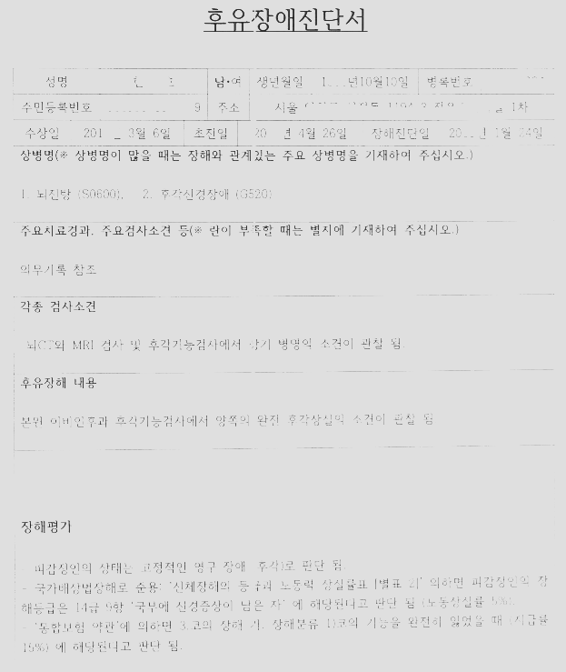 주치의의 소견을 참고하여 후유장해진다서를 발급 받아 보험금청구 및 교통사고 합의를 한 사례입니다.