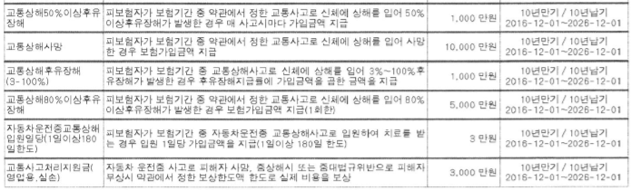 예를 들어... 다음의 표를 보면 가입년도와 생명보험 상해보험 기준이 다름을 알 수 있습니다.