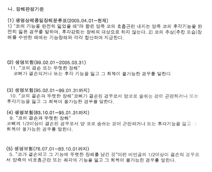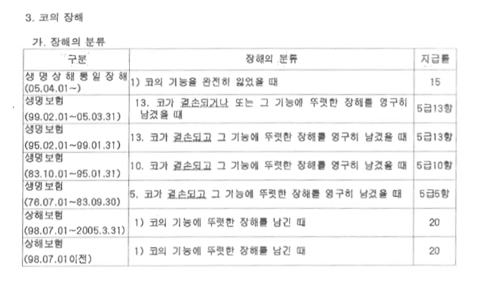 여기서 더 알아둘 점은 다수의 보험이 있다면 보험가입년도와 후각장해지급 기준 및 약관을 꼼꼼히