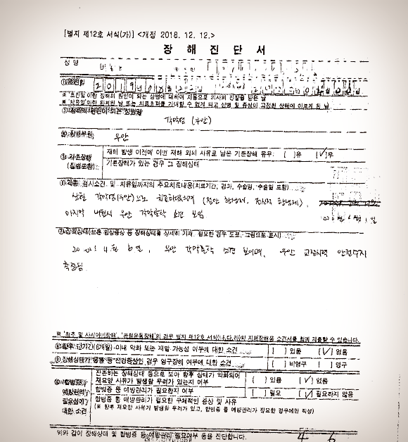 재해사고가 있고 산재승인 후 치료가 종결되어 주치의에게 산재장해진단서를 발급받아 근로복지공단으로 부터