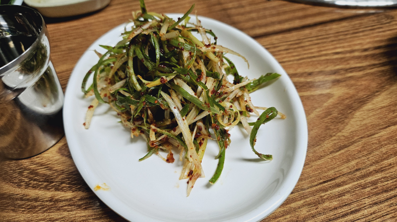 소금/소스 , 파절이, 쌈야채, 쌈장, 마늘, 동치미, 이렇게 반찬은 간단해요. 그런데 다른반찬이 더 필요없는 이유가 고기가 너무 맛있어요. 진짜 다른 반찬이 필요가 없습니다^^