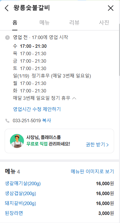 춘천 여행 때 마다 철판닭갈비랑 숯불 닭갈비를 자주 먹었더니...조금...ㅠㅠ 오늘은 닭갈비 말고, 다른 맛집도 가봐야겠다 싶어서 다른 맛집을 찾아봤어요. 그런데~ 와우~ 물어물어 알아본 곳이 있는데요!! 왕릉숯불갈비!! 요기가 숨은 맛집입니다.!!