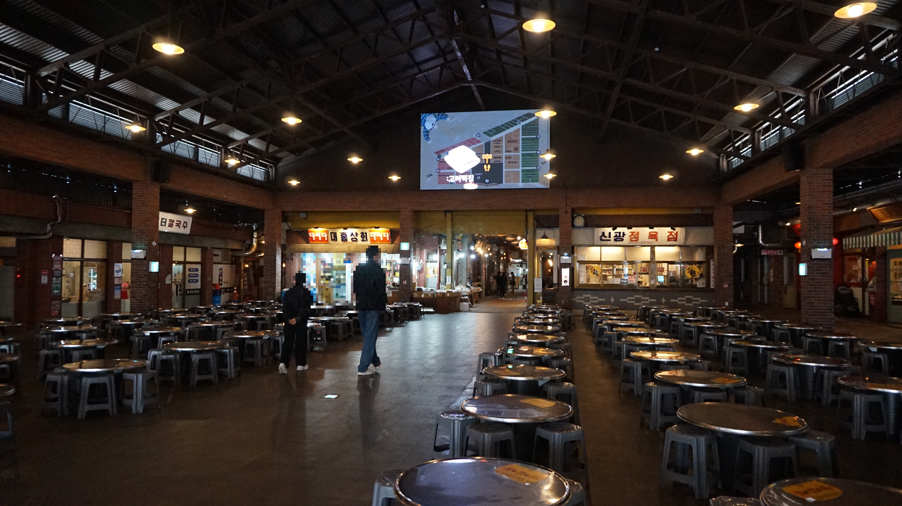 예산시장에 도착하니 11시도 안되었어요.... 아래 사진처럼 사람이 없었는데, 잠깐 1시간정도 다른 곳을 갔다오니 이런 사람들이 줄을 줄을..... 저기 광장식당에 자리가 없더라구요...ㅠㅠ 평일인데요 이렇게 사람이 많다니!!