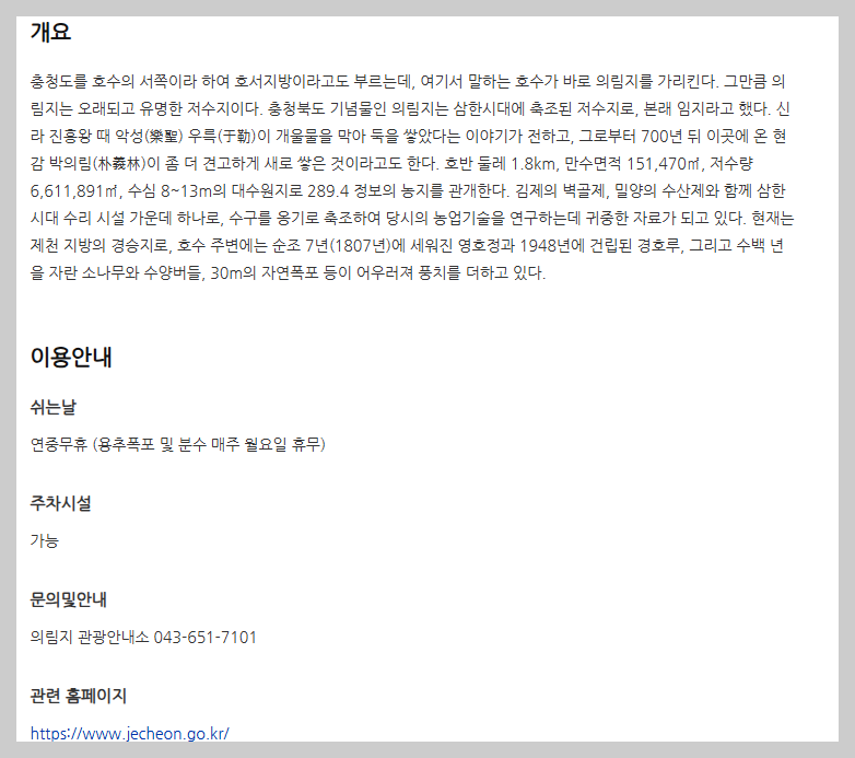 의림지(호수,연못,저수지)는 충북 제천시 모산동 241
